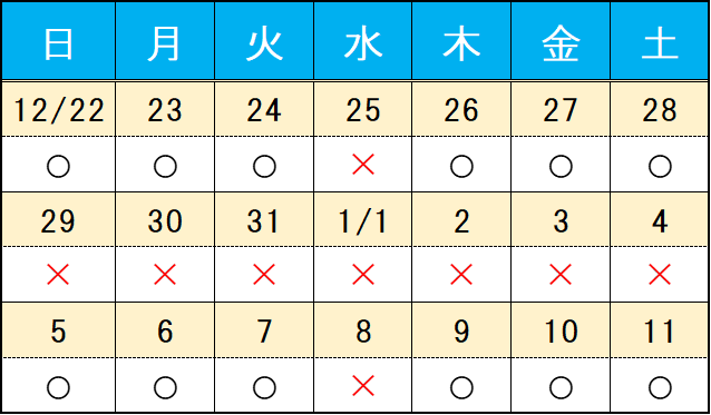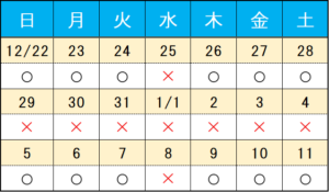 年末年始休診のお知らせ 12/28~1/4まで休診致します
