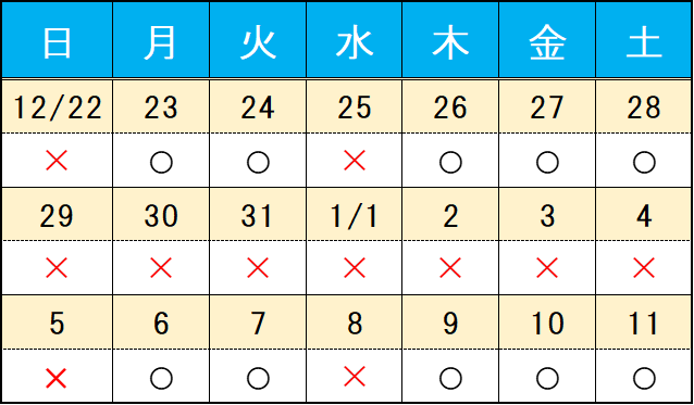年末年始休診のお知らせ 12/28~1/4まで休診致します